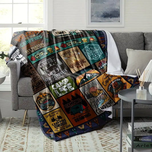 A Crowded Camper Themed Soft Fleece Blanket or Throw