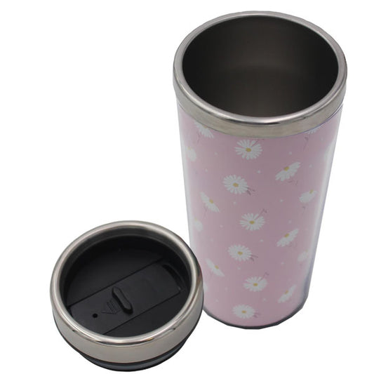SALE!!! Pink With Daisies Travel Mug Stainless Steel with Plastic Cover 450ml - Last One