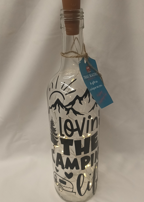 Stunning LED-lit decorative bottle designed specifically for happy campers.
