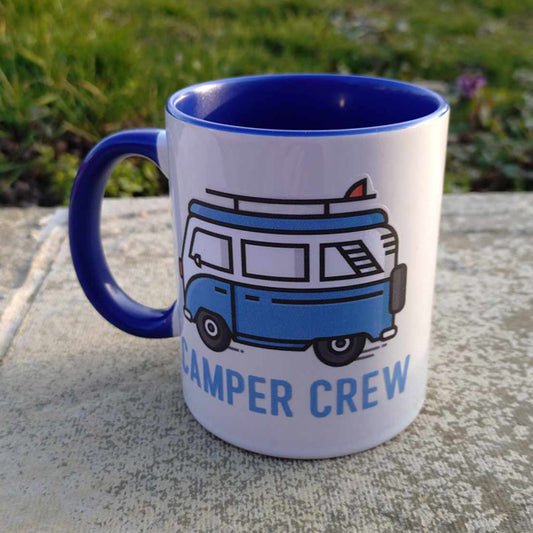 Ceramic Mug 11oz with "Blue Camper Crew" on it