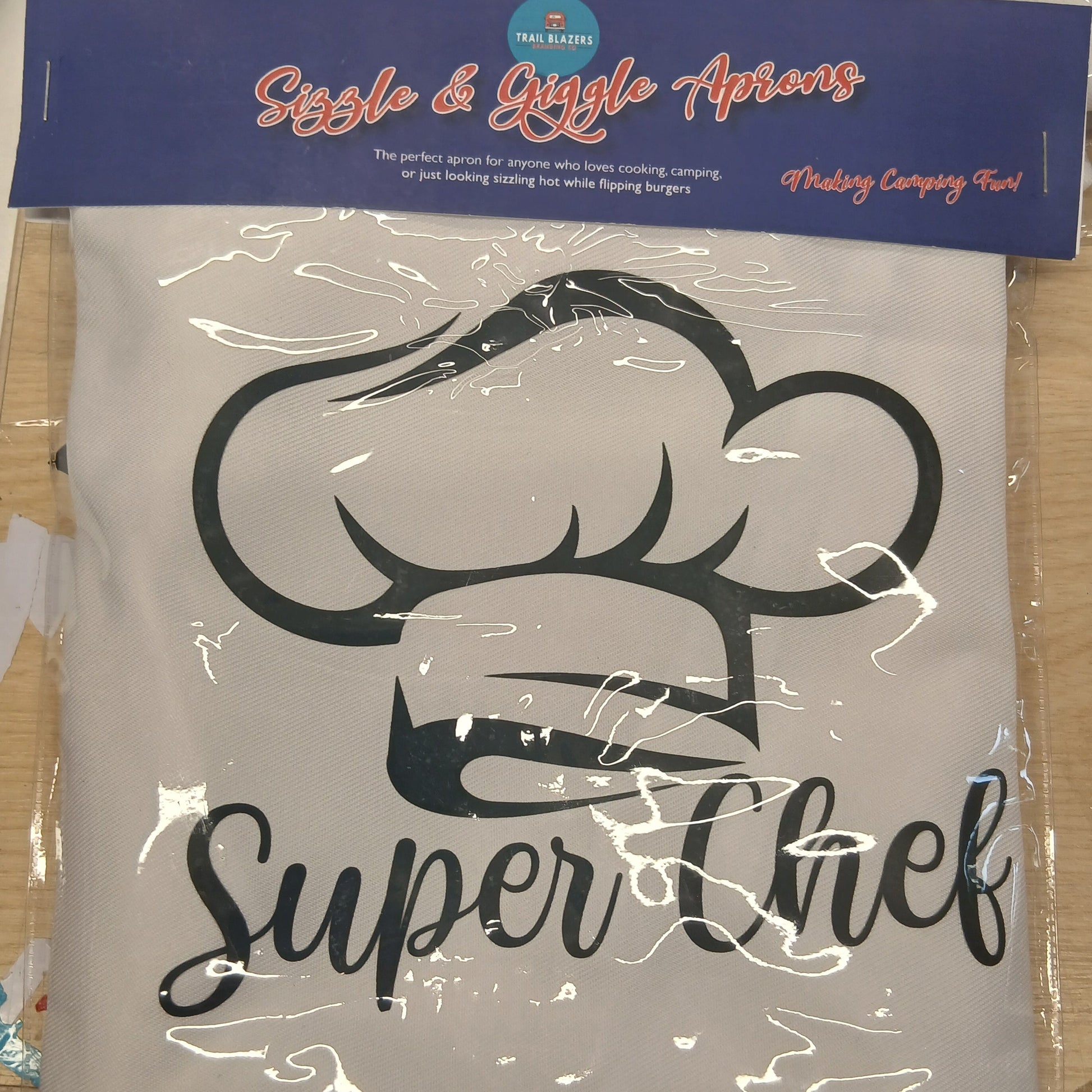Fun White Or Black Apron with Silly message on the Front “Super Chef” (Various Options)