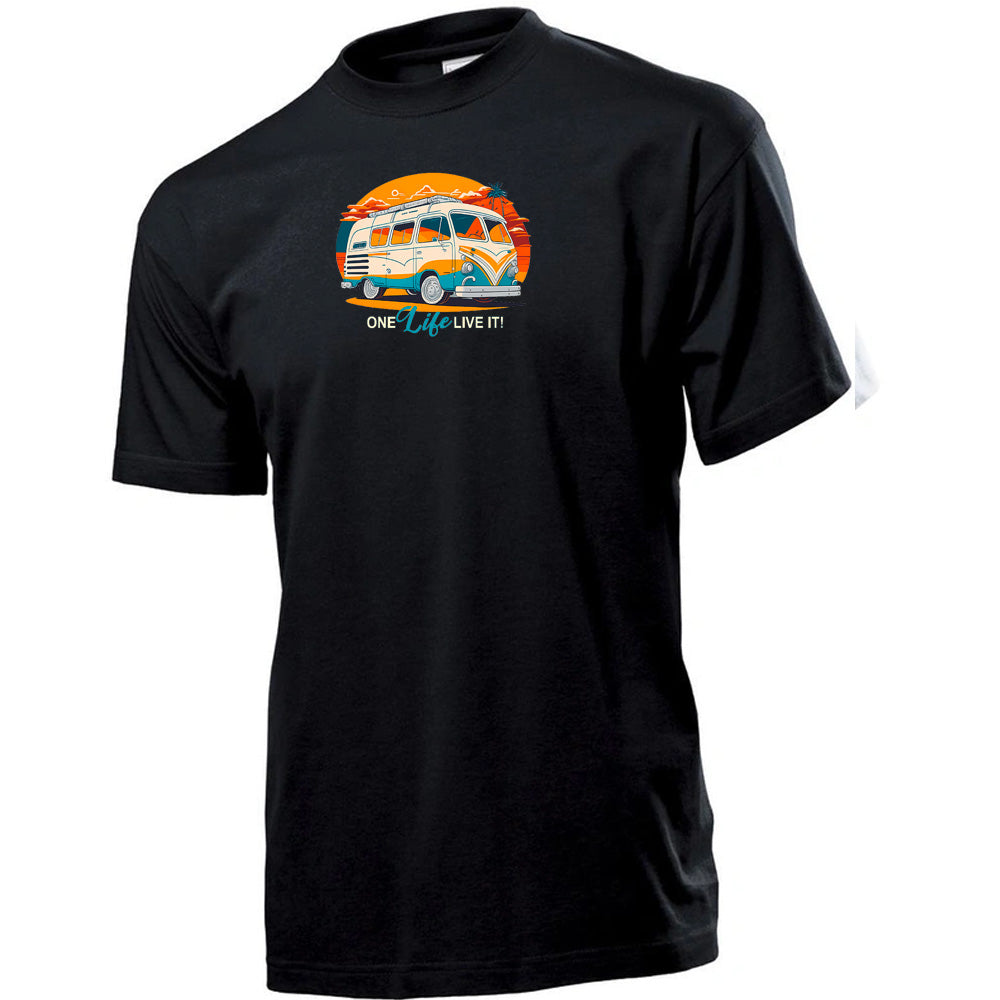This unisex crew neck Unisex Stedman ST2000 T-Shirt featuring the playful "Retro One Life Live It" Premium Unisex Crew Neck Soft Cotton T-Shirt (Various colours & Sizes)" design is an ideal present for any camper van enthusiast. Perfect for those who adore camping and exploring the outdoors, it proudly displays "Retro One Life Live It" on the front while keeping the back simple and clean. A fun and versatile choice for everyone who loves motorhomes, campers, or pitching tents!